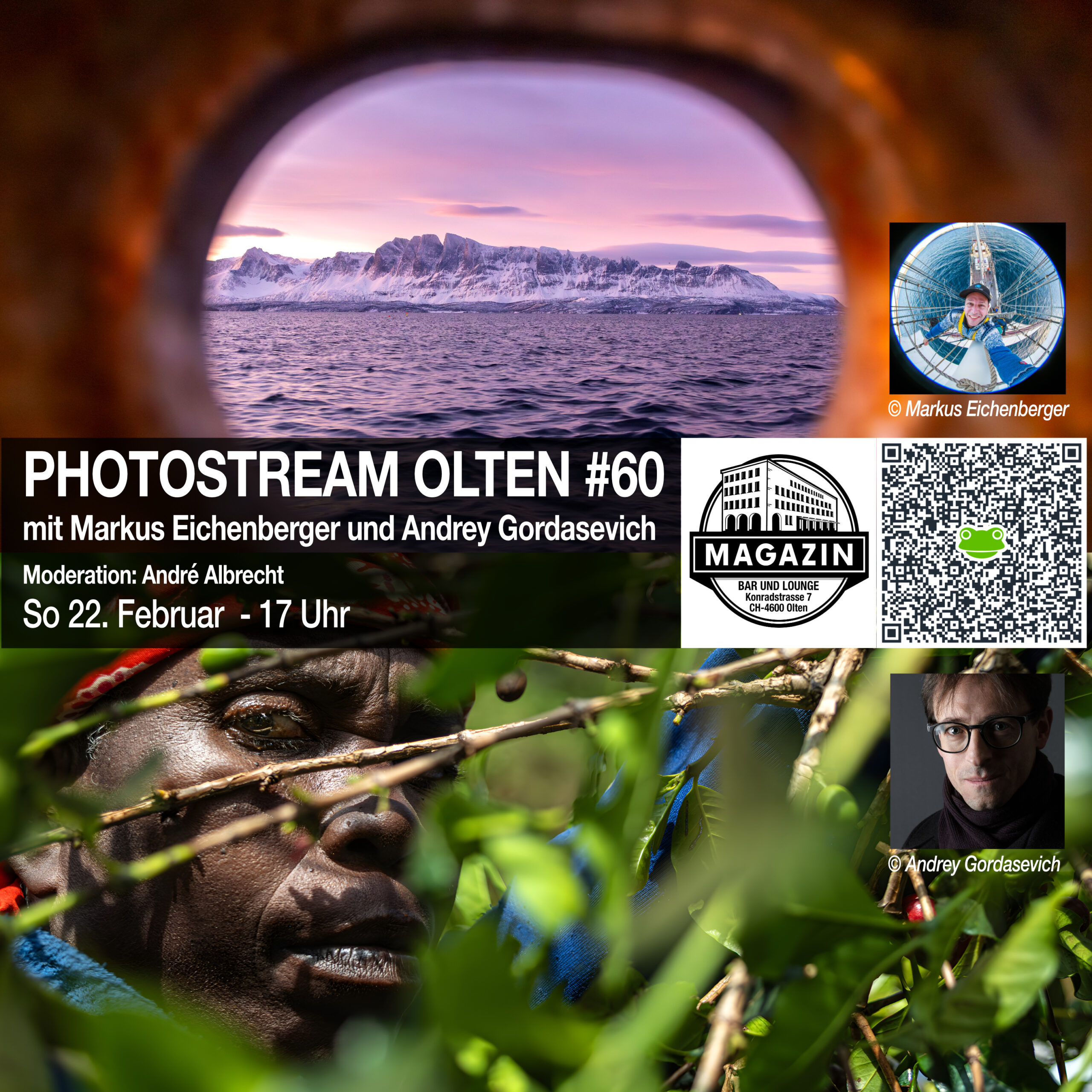 Der in Bern wohnhafte Fotograf Andrey Gordasevich wird unter anderem sein neues Buch „Taste of Place/Der Geschmack eines Landes“ vor. Darin wird die aussergewöhnliche Reise des burundischen Kaffees vom Herzen Afrikas bis zur Tasse auf dem Kaffeetisch nachgezeichnet.