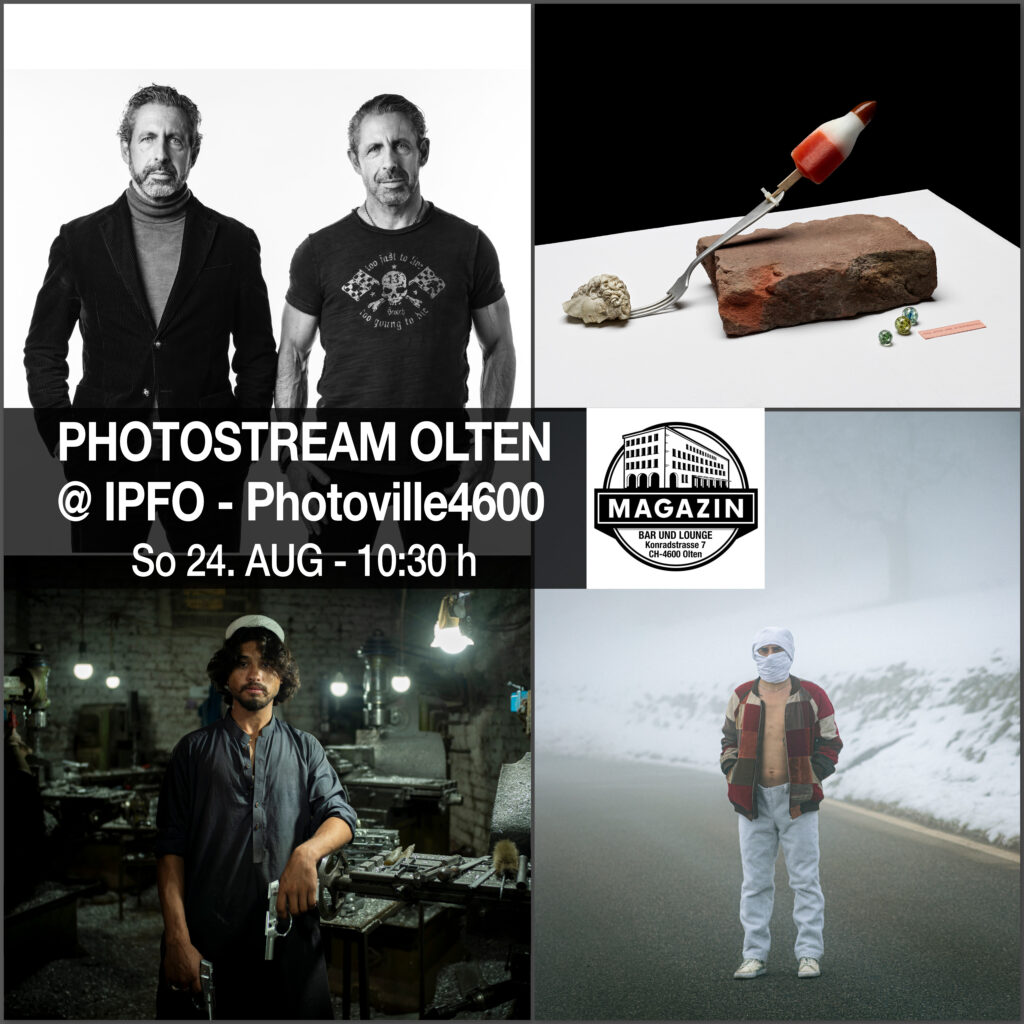 Zum Abschluss des IPFO Festivals lädt der PHOTOSTREAM OLTEN am Sonntagvormittag zu einer besonderen Matinee in die Magazin Bar ein. In diesem „Special“ präsentieren ausgewählte Fotografinnen und Fotografen des Photoville4600 ihre Werke persönlich und geben Einblicke in ihre Geschichten, Motive und Arbeitsweisen: URSULA STAUB, Wettingen – Kategorie REPORTAGEN + STORYTELLING – www.photography-staub.ch