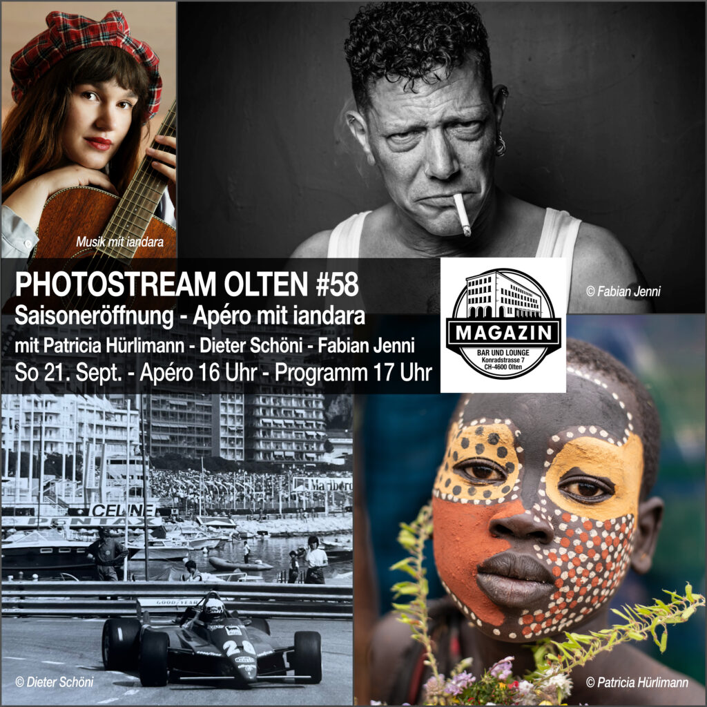 Diese Ausgabe des PHOTOSTREAM OLTEN stellt auch einen auch örtlichen Wechsel dar, in Zukunft werden die Fotoabende des Oltner Fotozirkels immer in der Magazin Bar im Haus der Museen stattfinden. Dies liegt unter anderem an der geplanten Zusammenarbeit mit dem IPFO Haus der Fotografie, das sich gleich gegenüber befindet. Am PHOTOSTREAM OLTEN Ende November wird der Fotograf und Co-Direktor des IPFO, Remo Buess, einen Vortrag über seine Arbeit als Fotograf und Mitgründer des IPFO Fotografie Hauses in Olten halten.